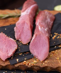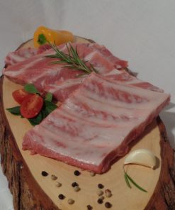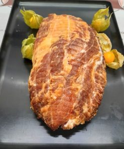 Das Schäufelchen wird aus der Schulter geschnitten. Es ist nach fränkischer Art mit Knochen und Schwarte. Die Schwarte ist rautenförmig eingeschnitten, für eine schöne Knusperkruste. Im Ofen gegart für ein zünftigen Genuss. Durch das Pökelsalz wird das Fleisch beim Garen schön rot, eine weitere Zugabe von Salz ist hier nicht mehr notwendig.