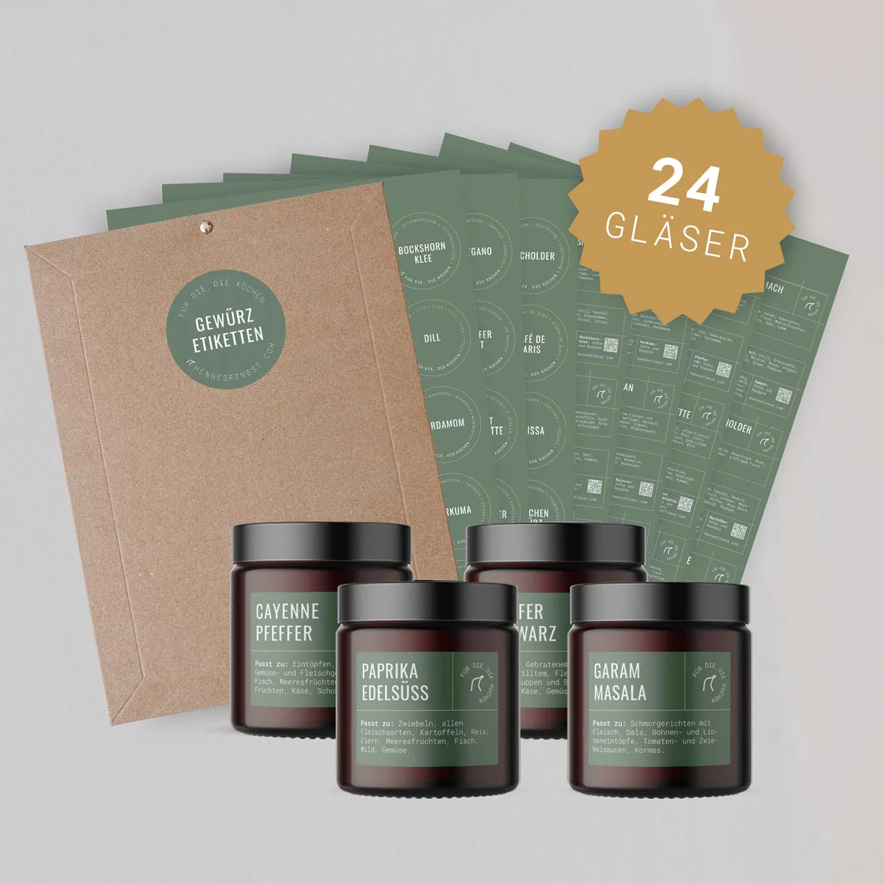 24 Gewürzgläser & Gewürzetiketten Salbei | Set