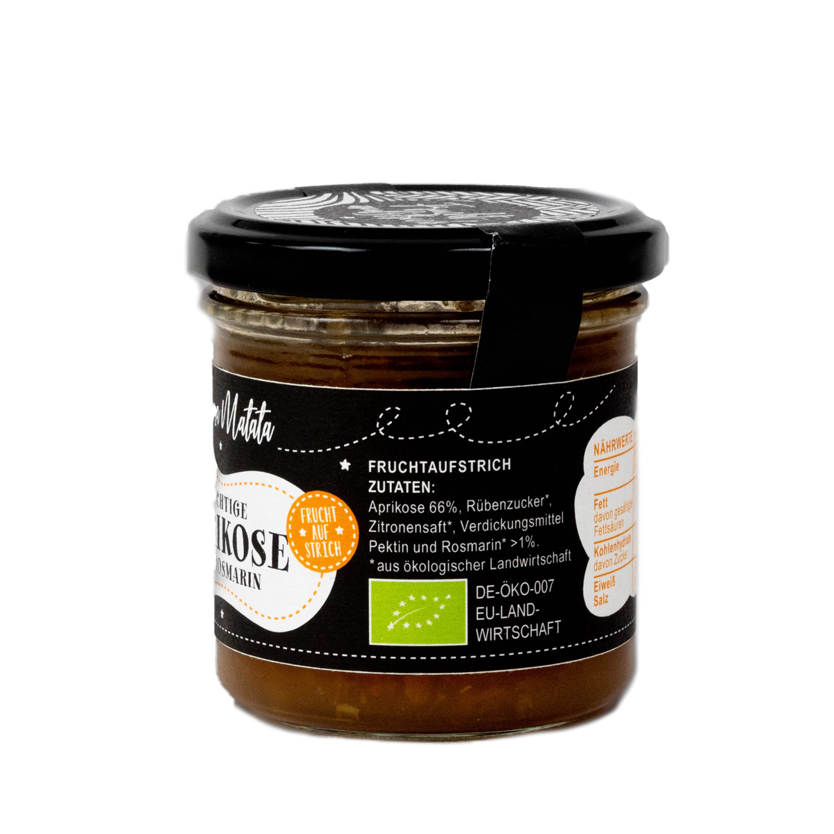 Zutaten: Aprikosen* 69 %, Rübenzucker*, Zitronensaft*, Geliermittel: Pektin, Rosmarin* >1%