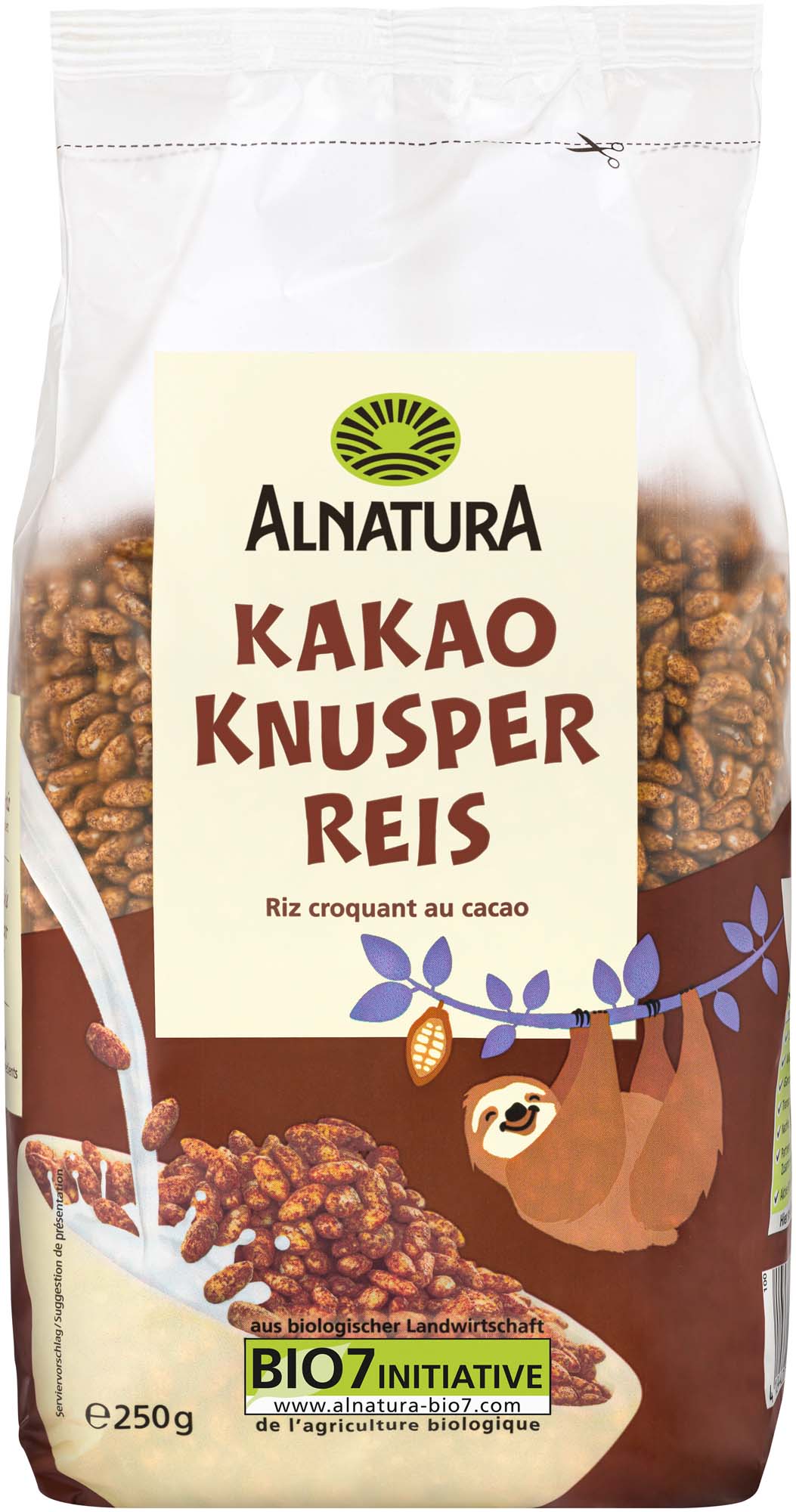Frühstückshunger? Appetit auf einen Snack? Rein in die Schüssel mit dem Alnatura Kakao-Knusperreis, Milch dazu – und schon verwandelt diese sich in Kakao! Das klappt natürlich auch mit Pflanzendrinks. Ein weiterer Pluspunkt: Der Knusperreis wird aus gepufftem Vollkornreis und nur drei weiteren Zutaten hergestellt – getreu der Devise: „So viel wie nötig, so wenig wie möglich.“ Alle Zutaten stammen aus Bio-Landbau.