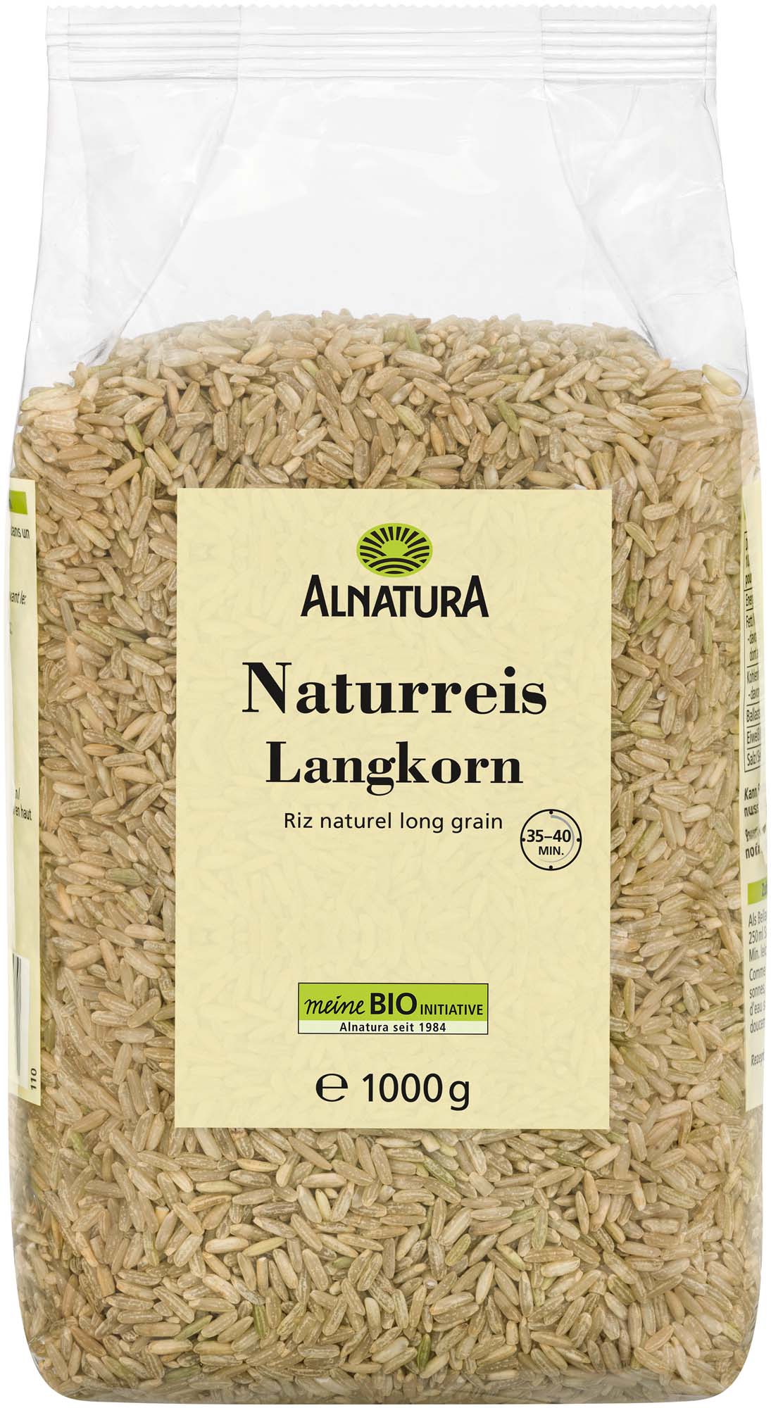 Ungeschälter Naturreis vom Fuße des Himalaya-Gebirges: Dieser Vollkornreis hat einen kräftig-nussigen Geschmack – eine ideale Beilage zu herzhaften Gerichten. Die Kochzeit beträgt 35 bis 40 Minuten. Der Alnatura Naturreis Langkorn stammt aus Bio-Landwirtschaft.