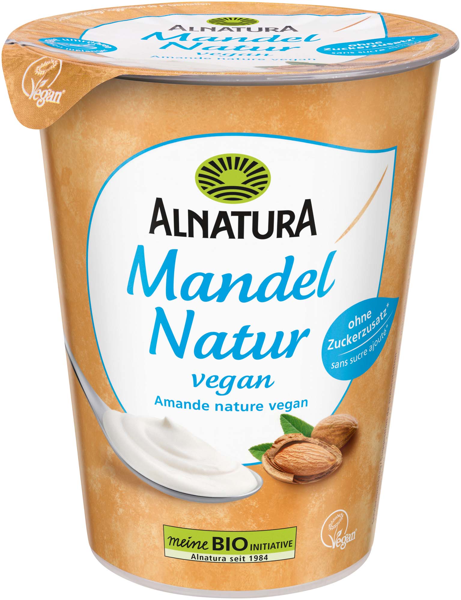 Eine vegane Joghurtalternative auf der Basis von Mandeldrink, in Bio-Qualität; cremig-mild im Geschmack und ohne Zuckerzusatz hergestellt (die Zutaten enthalten von Natur aus Zucker). Alnatura Mandel Natur schmeckt überall dort, wo sonst auch Joghurt passt: pur, zum Müsli, als Dessert und zu vielem mehr. Die Mandeln für dieses Produkt stammen aus Europa.