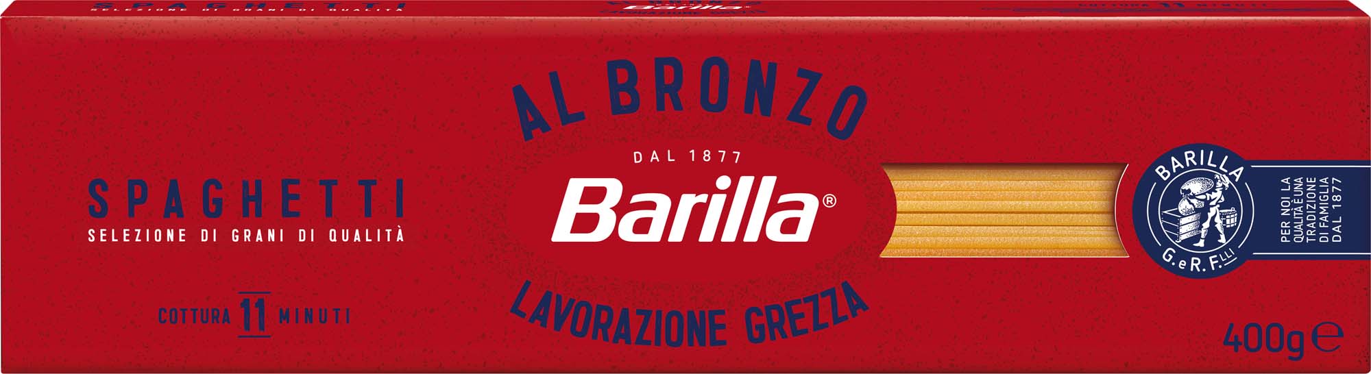 Die intensiv raue Textur und die gold-gelbe Farbe lassen den beliebten Pasta-Klassiker in ganz neuem Licht erscheinen. Das spezielle Barilla Herstellungsverfahren mit Bronze-Matrizen verleiht der Pasta ihre besonders raue Oberfläche – für ein authentisches Genusserlebnis für alle Sinne. Perfekt für Spaghetti Pomodoro und frischem Basilikum.