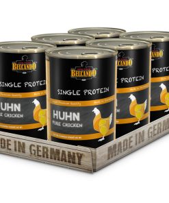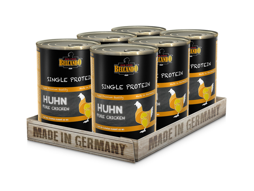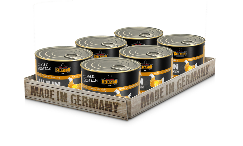 Unsere Dosennahrung BELCANDO® Single Protein gibt es in sechs ausgesuchten Fleischsorten. Es sind keine weiteren Zusätze enthalten. Single Protein Feuchtnahrung ist in Kombination mit dem Ergänzungsfuttermittel BELCANDO® Mix it GF eine ideale Proteinquelle bei Eliminationsdiäten, bei denen Sie herausfinden, auf welche Fleischsorten Ihr Tier unter Umständen empfindlich reagiert.