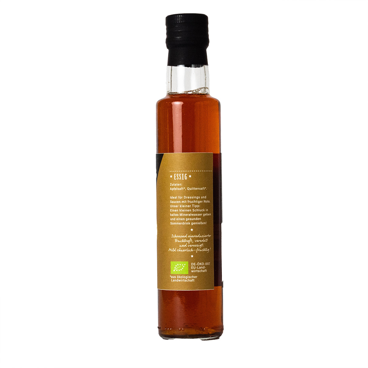 Unser Apfel-Quitten Balsamico ist nicht nur eine ideale Dressing Zutat, sondern auch in Mineralwasser ein besonderer Genuss. Der fruchtige süß-saure Geschmack der aus reinem Bio Apfel- und Quittensaft gewonnen wird, ist mit 5,0 % Säure immer noch mild und gut verträglich.