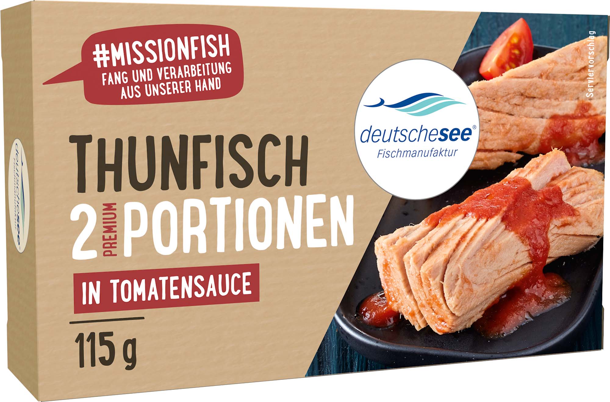 Thunfisch aus verantwortungsvoller Fischerei mit eigener Fangflotte und Verarbeitung. Premium Portionen in Tomatensauce.