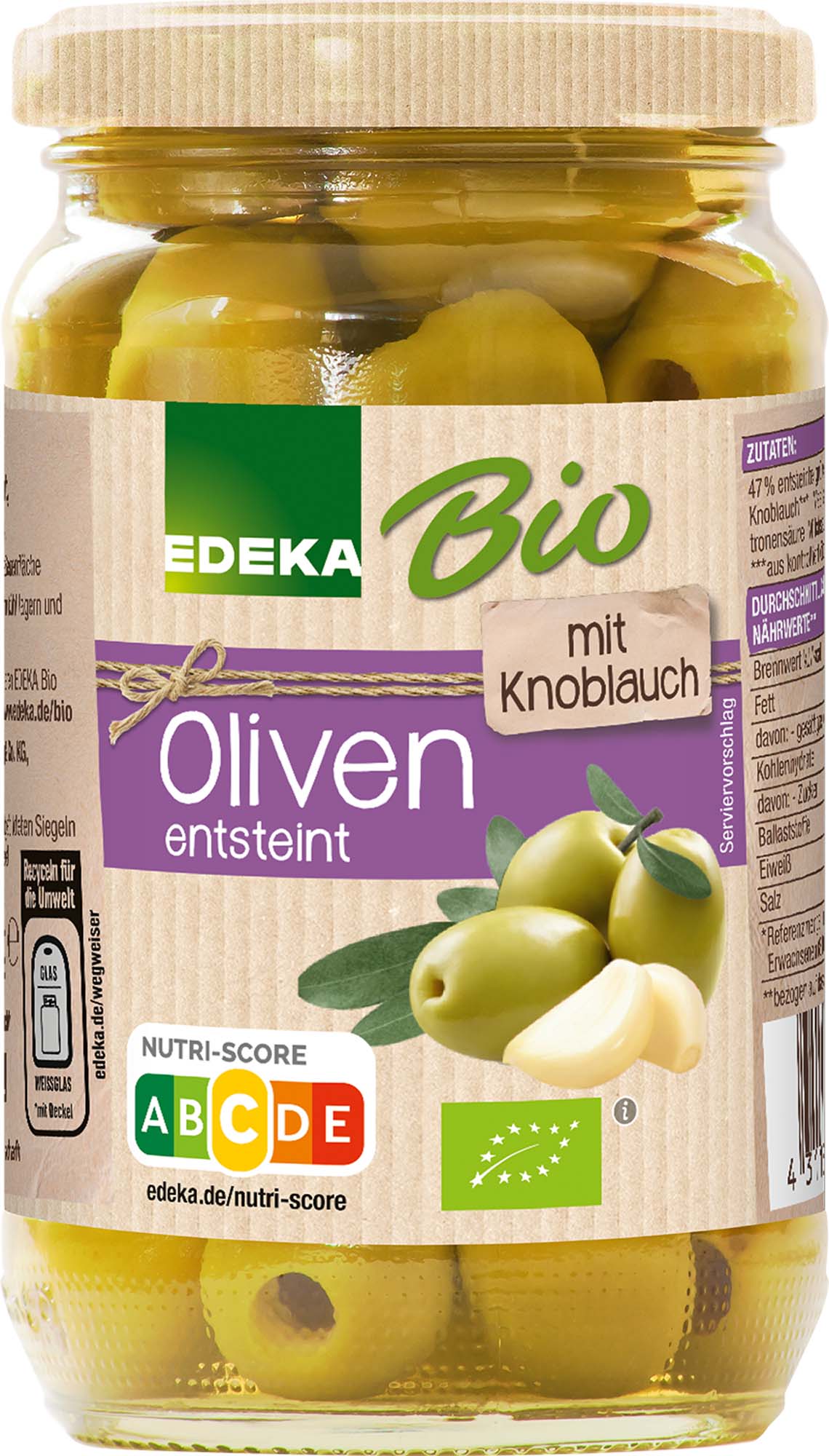 EDEKA Bio Grüne Oliven gefüllt mit Knoblauch 350g
