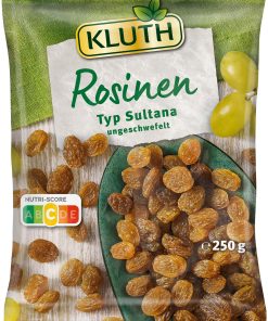 • Mischung aus Sultaninen, geschälten Mandeln, Haselnusskernen, blanchierten Mandeln, Cashewkernen und Walnusskernen