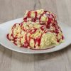 Frische Erdbeeren, Erdbeersauce, 3 Kugeln Eis (Erdbeere und Vanille), Schlagsahne NCVH