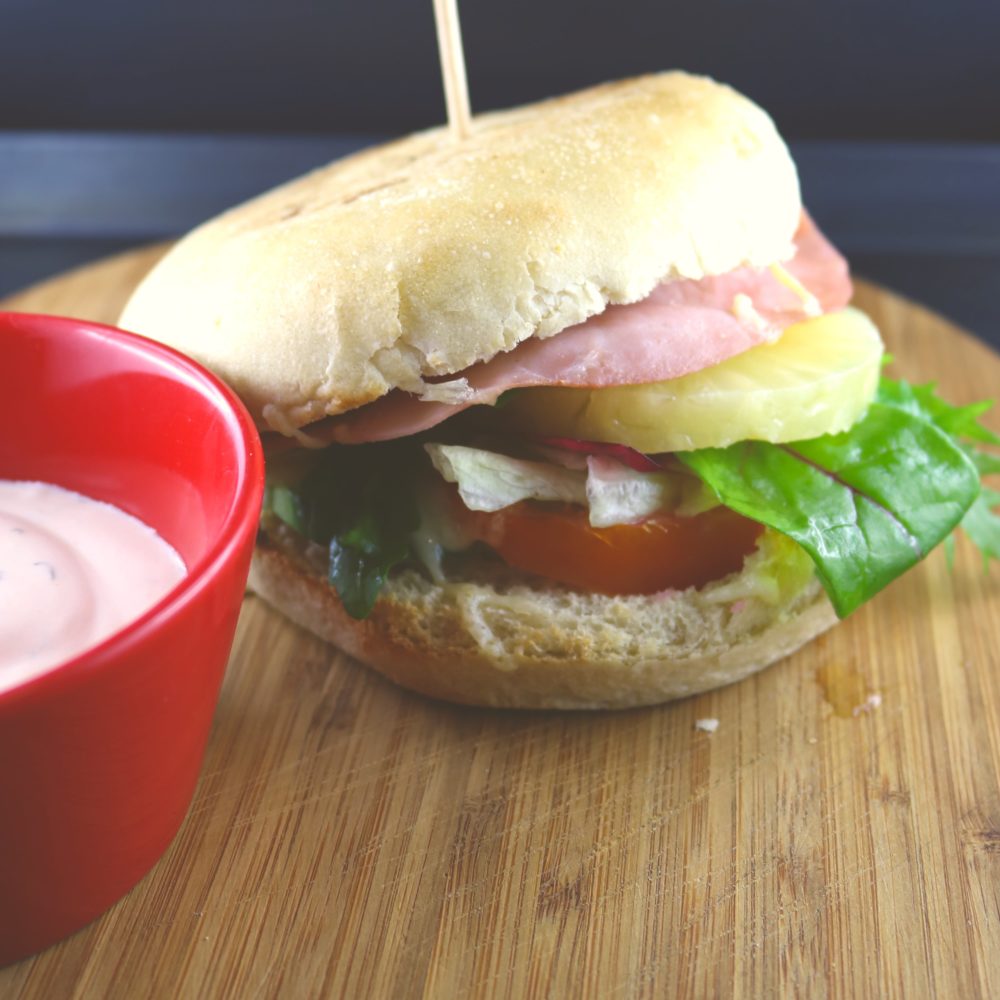 Mit gekochtem Hinterschinken, Ananas & doppelt Käse.