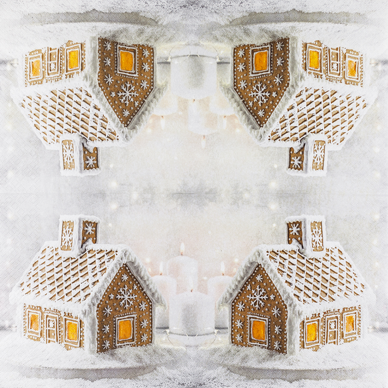 Entdecken Sie die charmante Eleganz der Gingerbread House Servietten! Perfekt für festliche Tischdekorationen mit detailreichem Lebkuchenhausmotiv auf weichem Tissue.