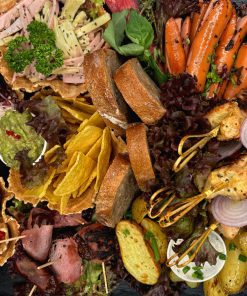 Bestehend aus süßen Teilchen – Muffins, Minidonuts, Quarkkäulchen, versch. Kuchenstücke, Brownies oder ähnliches. Dekoration kann vom Produktbild abweichen.