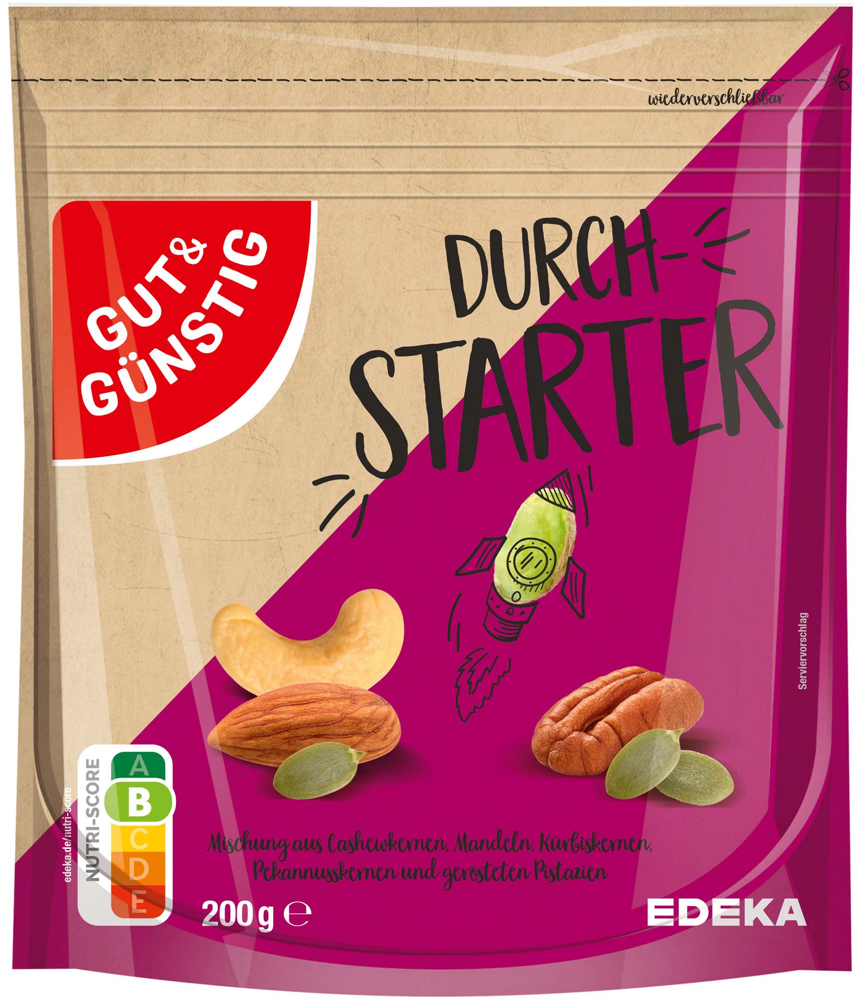 • Mischung aus Cashewkernen, Mandeln, Kürbiskernen, Pekannusskernen und gerösteten Pistazien