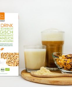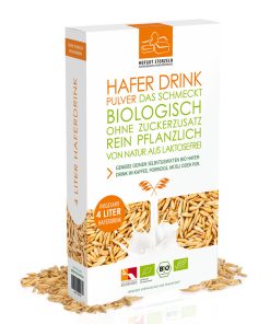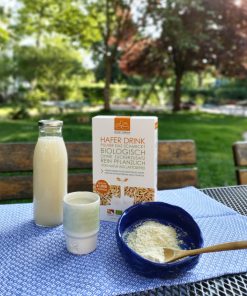 Dieses Haferdrinkpulver ist sehr praktisch in der Anwendung für alle die es eilig haben. Es ist die Alternative zum Getränkekarton oder zum Selbermachen mit Enzymen (siehe unser Haferdrink Enzym-Set). Die Zubereitung ist denkbar einfach: 4 gehäufte TL Pulver (25 g) mit 250 ml Wasser mixen oder verrühren. Auf diese Art ist es für viele Gelegenheiten, auch wenn gerade kein frischer Haferdrink im Haus ist, eine super schnelle und leckere Lösung.