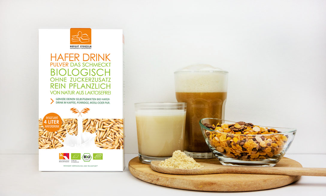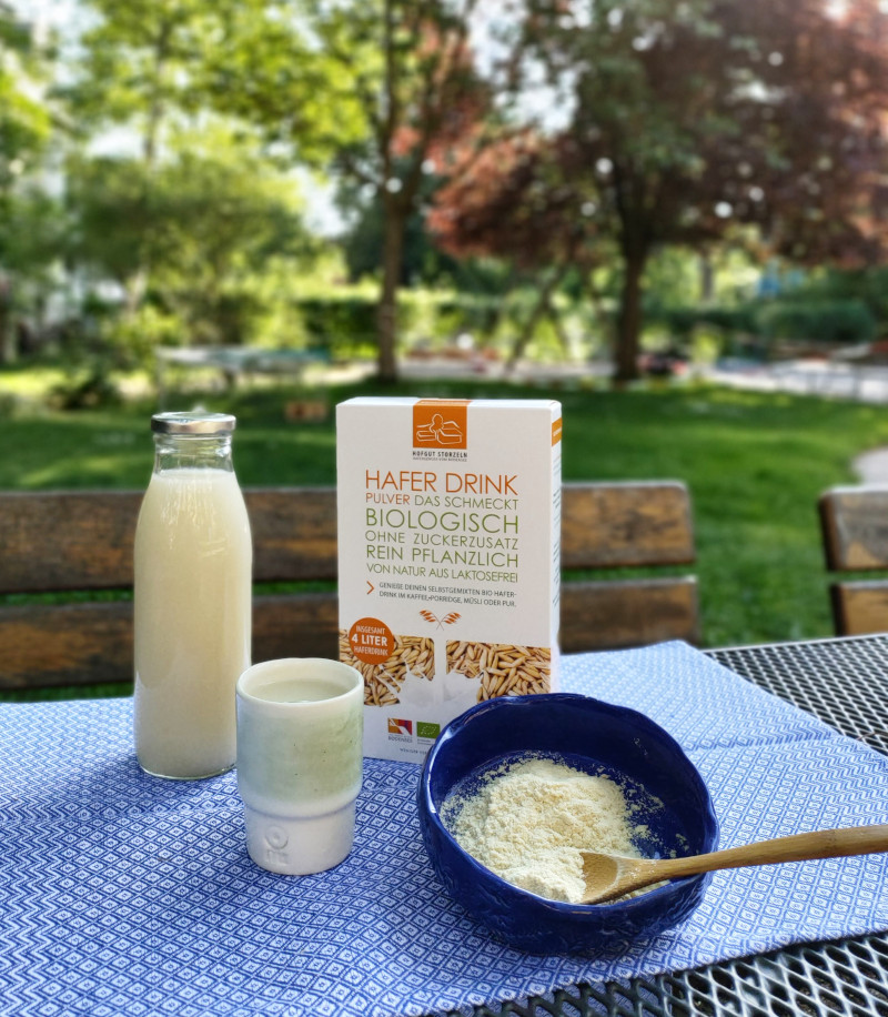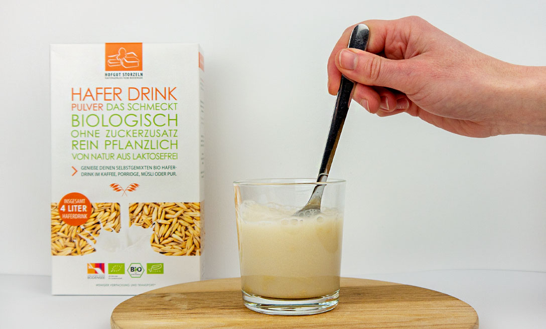 Aus ökologischer Sicht ist es ressourcenschonender den Haferdrink mit Enzymen selbst herzustellen. Wir wissen, dass das nicht für alle im Alltag immer umsetzbar ist und daher haben wir uns entschieden dieses sorgsam ausgewählte Haferdrinkpulver in Kooperation mit Hofgut Storzeln anzubieten, denn nur hier sehen wir den ökologischen Mehrwert.