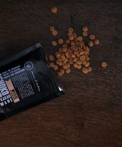Couverture Ambra 36% (Zucker, Kakobutter, Vollmilchpulver, Kakaomasse, Emulgator (E322), Vanille), Haselnusskerne 10%, Zucker, Rapsöl, Luna R (Rapsöl (teilweise gehärtet), Sonnenblumenöl, Kokosöl, Olivenöl, Aroma, Antioxidationsmittel (Rosmarineextrakt))