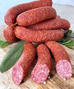 Unsere Kaminwurz sind unsere hausgemachte Vespersalamisalami. Hergestellt mit ausgesuchtem Schweine- und Rindfleisch, Speck, Salz sowie erlesenen Naturgewürzen zubereitet. Traditionell über Buchenholz geräuchert. Ideal zum Vespern, mit dem Messer direkt am Tisch aufgeschnitten. Dazu ein frisches Bauerbrot und ein Glas Rotwein. So geht Genuss.