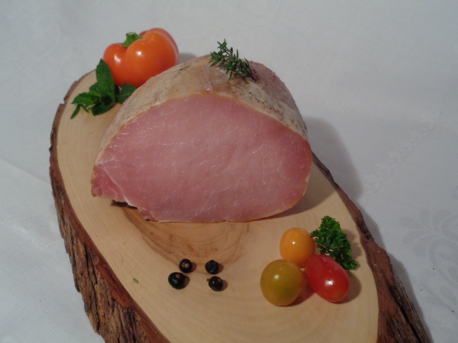 Mild gepökelt und in heißem Buchenrauch geräuchert. Aus dem mageren Schweinerücken.