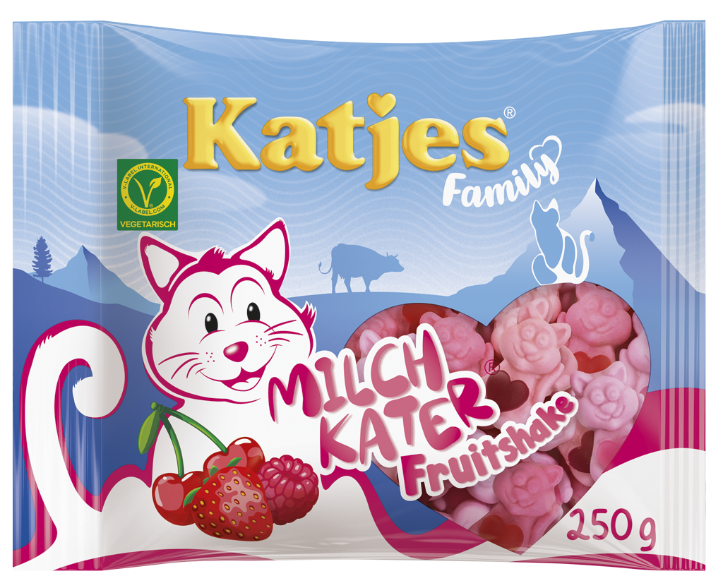 Naschkatze trifft auf Kater? Mit den niedlichen Milchkater-Fruchtgummis kein Problem. Die drei fruchtig-leckeren Sorten Erdbeere, Apfel und Zitrone, kombiniert mit softem Milchgeschmack, bringen jede Naschkatze um den Verstand.
