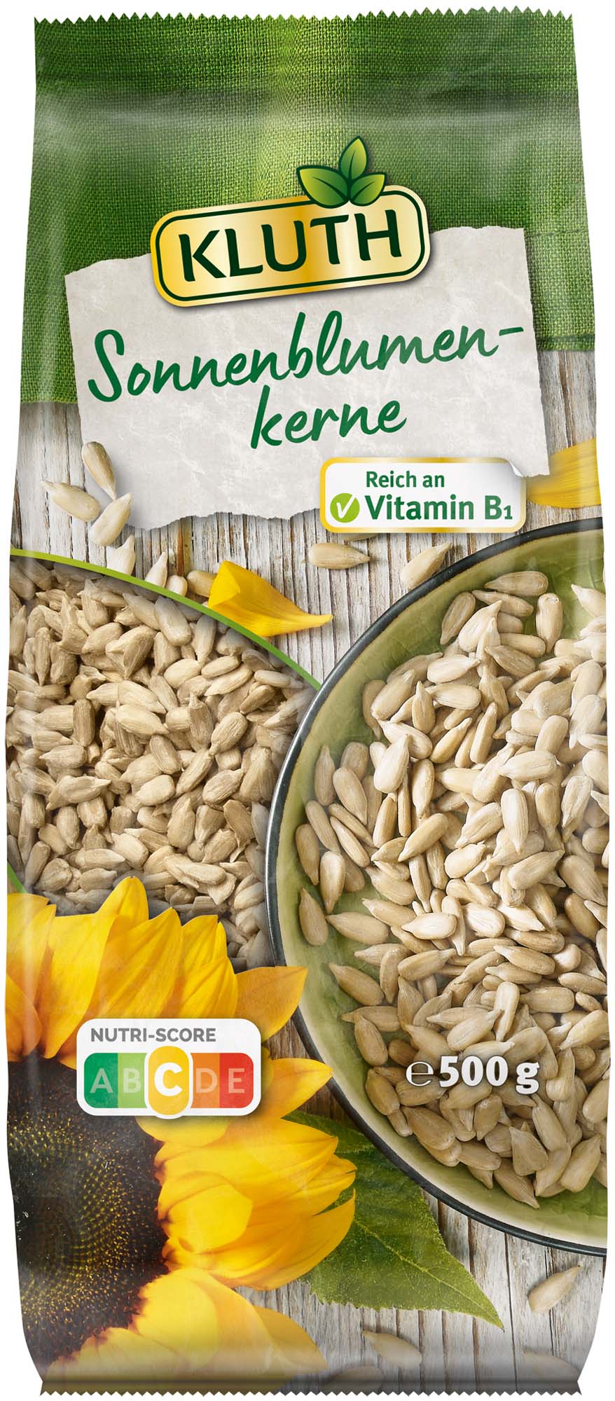 Sonnenblumenkerne sind vielseitig verwendbar. Als kernige Zutat im selbstgemachten Müsli, leicht angeröstet auf frischem Salat oder in Brot und Brötchen. Damit die Mühe lohnt, empfehlen wir in jedem Fall Sonnenblumenkerne in KLUTH Qualität. Sonnenblumenkerne sind reich an Vitamin B1. Vitamin B1 trägt zu einer normalen Herzfunktion bei.