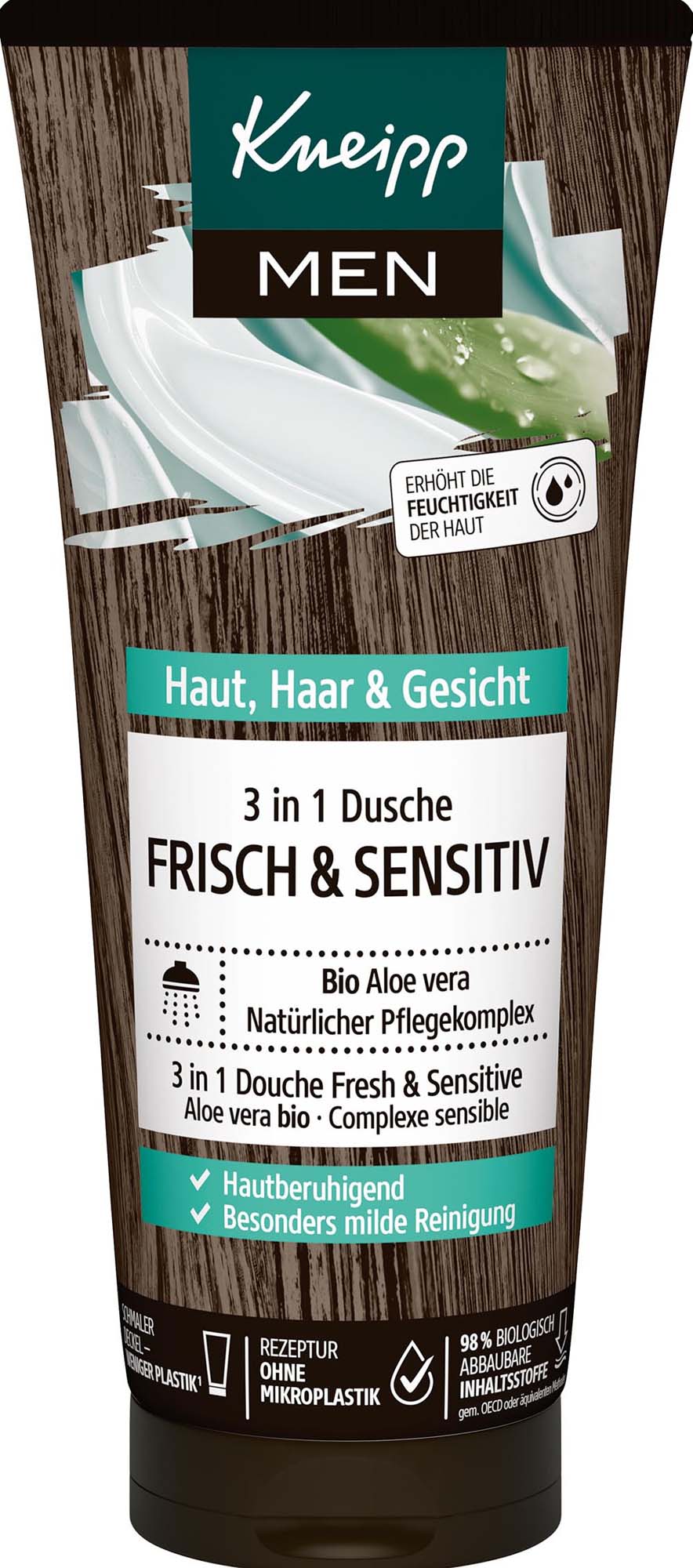 Das Kneipp Men Duschgel 3in1 Frisch & Sensitiv ist eine multifunktionale Reinigungslösung für Körper, Gesicht und Haare. Mit einer milden Formel, die die Haut nicht austrocknet, sorgt es für ein frisches, angenehmes Gefühl. Ideal für empfindliche Haut, bietet es gleichzeitig eine gründliche Pflege.