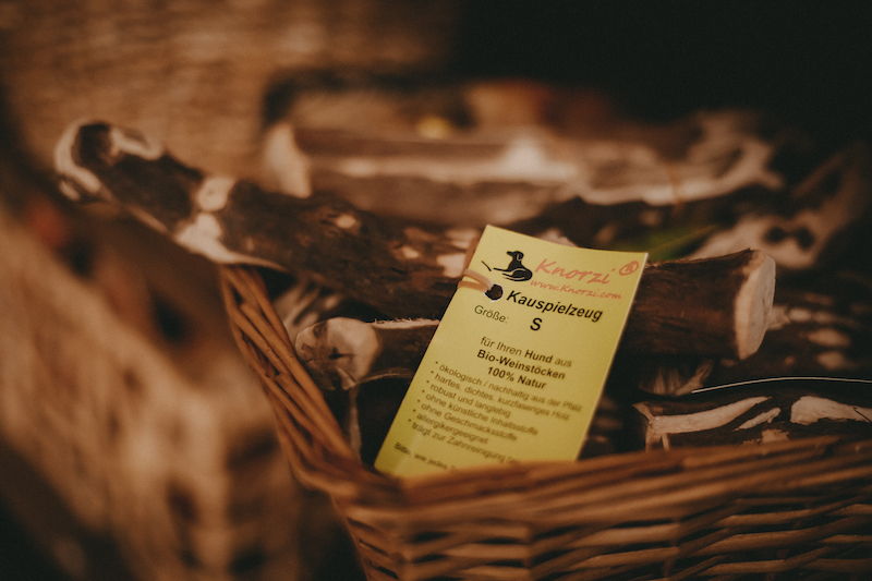 Weinreben sind lianenartige Rankgewächse aus flexiblem Holz, das nicht zum Splittern neigt, sondern auffasert. Viele Hunde neigen dazu, Teile ihres Spielzeugs zu verschlucken. Versehentlich geschluckte Knorzi®-Fasern stellen für den Hund keine Gefahr dar. Auch deshalb sind Knorzi®-Rebhölzer ein ideales Kauspielzeug. Zudem lieben Hunde das Anknabbern dieser Hölzer, weil sie einzelne Fasern lösen können und somit ein Erfolgserlebnis haben.