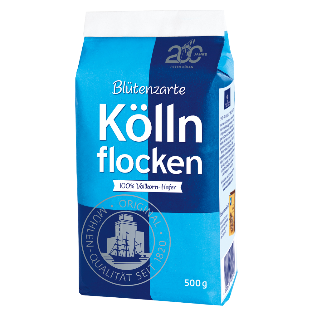 Blütenzarte Köllnflocken sind sehr feine Hafer-Vollkornflocken, die aus geschnittenen Haferkernen, der Hafergrütze, gewalzt werden. Besonders beliebt sind sie in Porridge sowie als Zutat zum Backen!