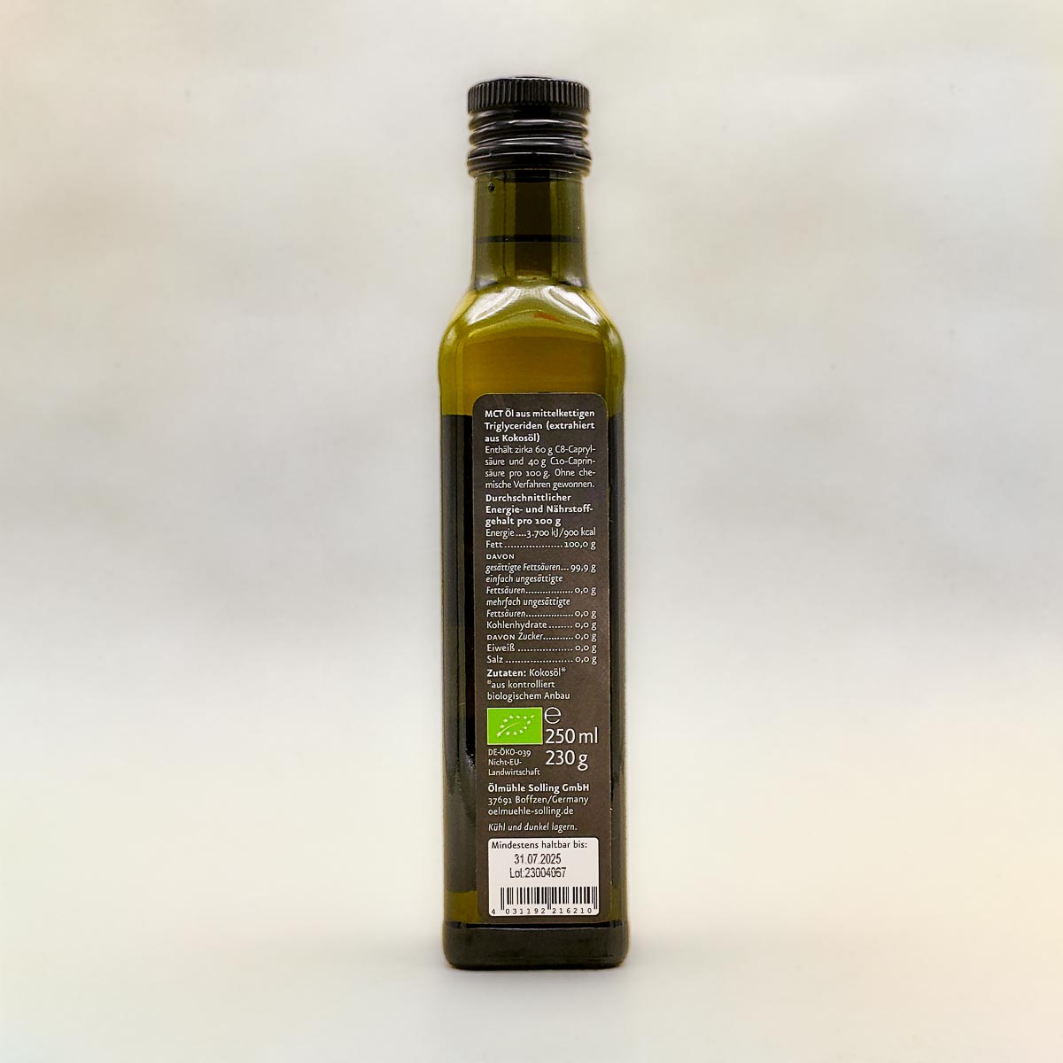 - MCT-Öl hergestellt aus 100 % Bio-Kokosöl