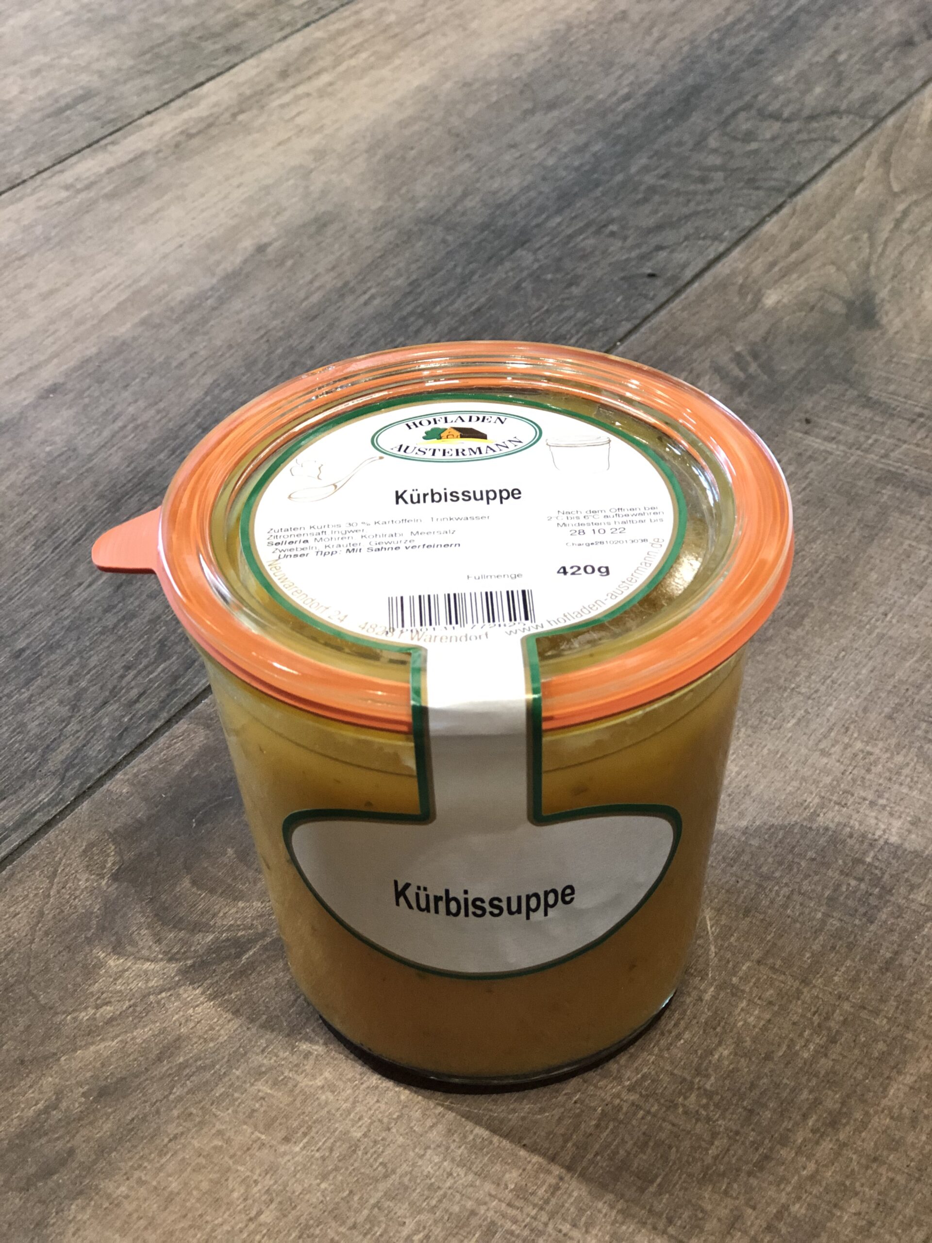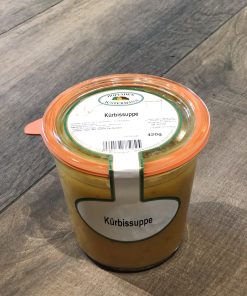 Kürbissuppe mit Kürbissen aus eigenem Anbau.