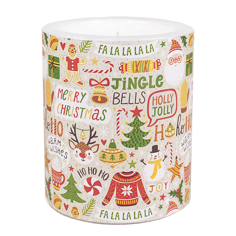 LC Fa La La Ø 99 mm Dekorkerze – eine bezaubernde Kerze aus Paraffin mit einer Brenndauer von ca. 60 Stunden. Perfekt für weihnachtliche Dekorationen.