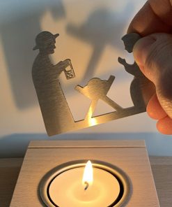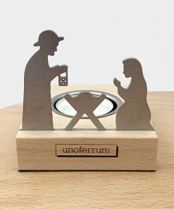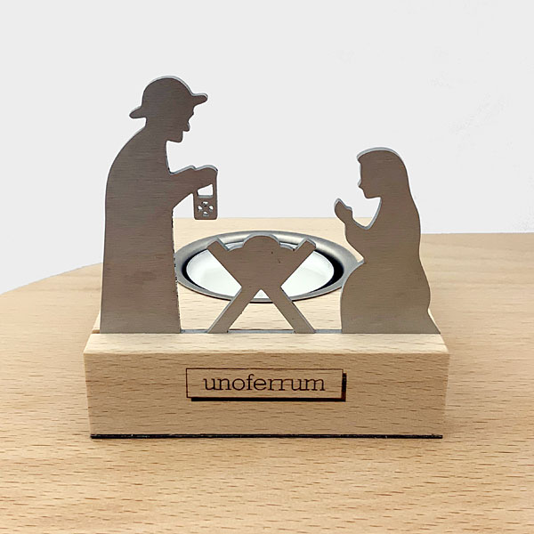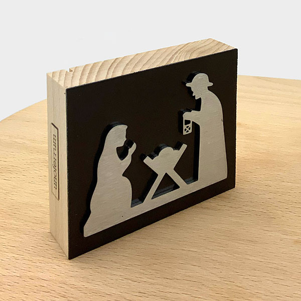 Hier überzeugen klares Design und hochwertige Materialien. Auf einer handgeschliffenen Buchenholzplatte kann in der eingelassenen Nut die lasergeschnittene Figur aus fein gebürstetem Chromstahl platziert werden. Nach der Weihnachtszeit lässt sich die Figurengruppe platzsparend auf der Unterseite der Holzplatte magnetisch befestigen. Lieferung ohne Kerze.
