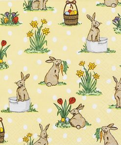 Entdecken Sie hochqualitative Little Rabbits-Servietten: dreilagig, 33 x 33 cm, mit charmantem Frühlingsdesign – ideal für Ihre Osterdekoration.