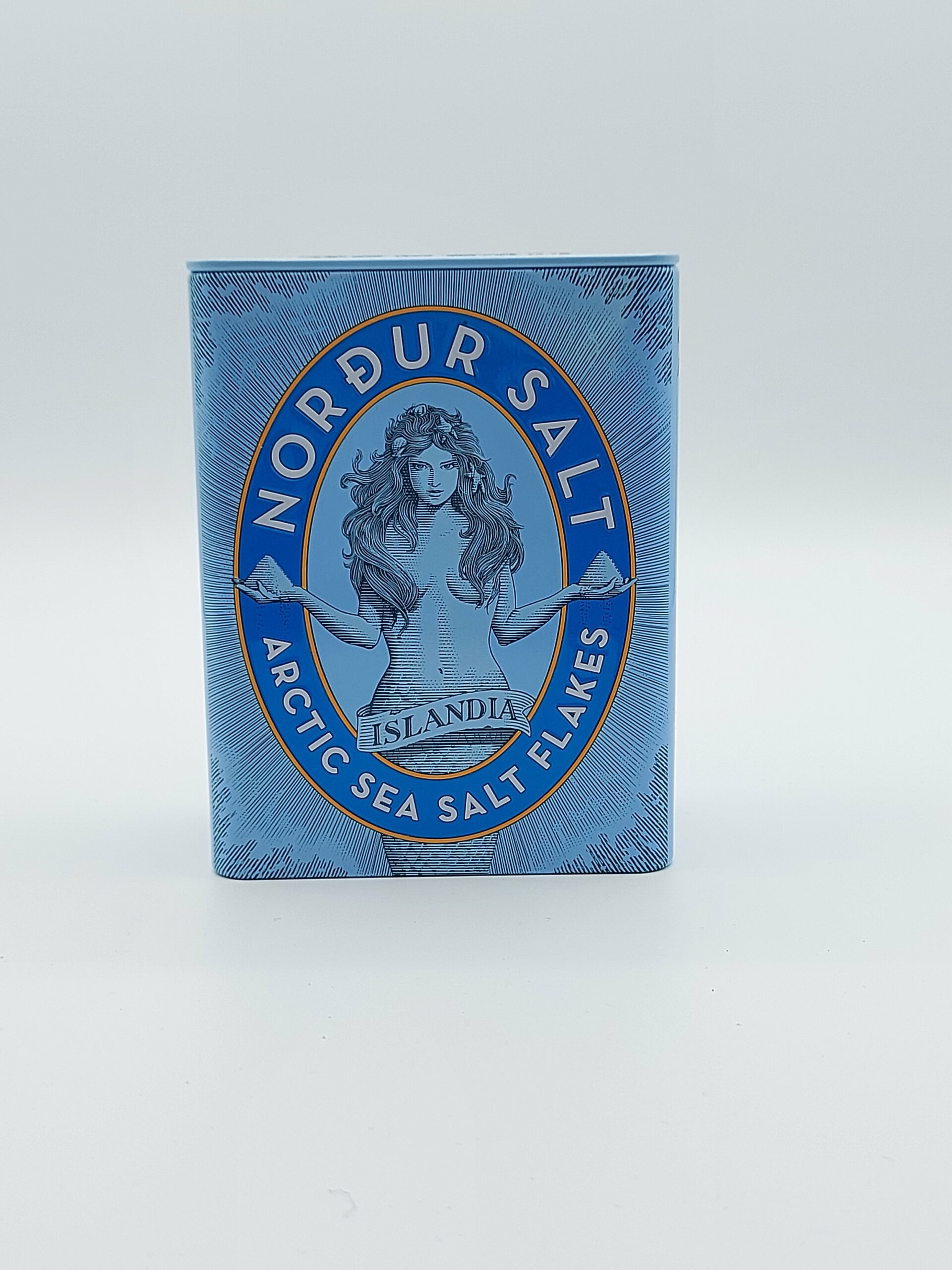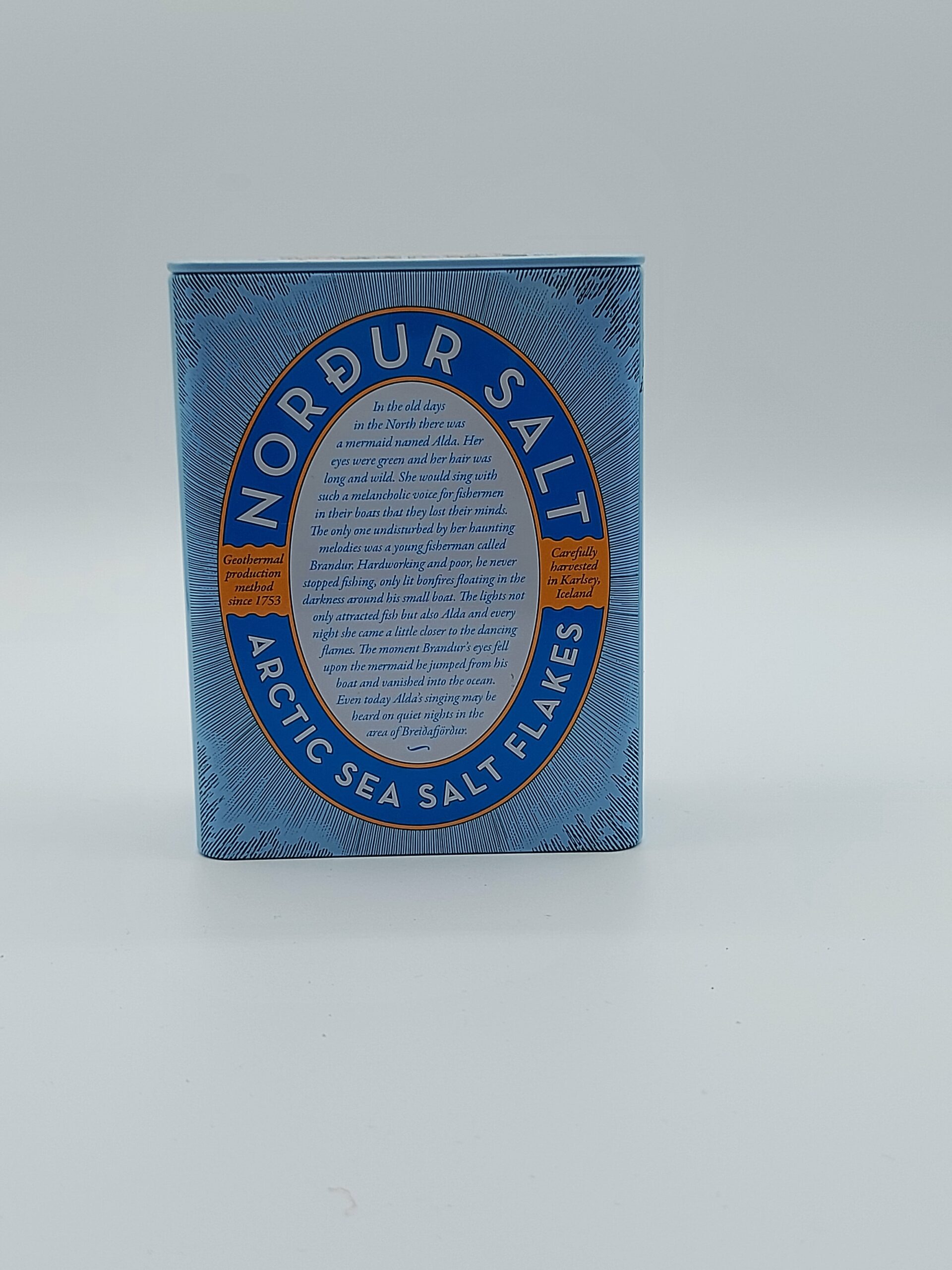 Das ist das Salz, das wir in der Küche verwenden. Es stammt aus dem Nordatlantik, vor Island, schmeckt sauber und angenehm unaufdringlich. Es ist nicht fein, sondern flockig, ohne dabei harte Kristalle auszubilden. Einfach nur schön crunchig. Hier in einer Dose aus Blech, die so hübsch ist, dass sie nicht im Küchenschrank verschwinden sollte.