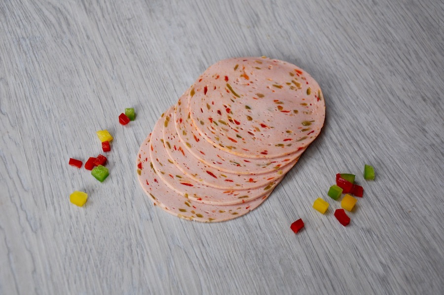 Schweinefleisch 67%, Trinkwasser, Nitritpökelsalz, Glucosesirup, Phosphat, Stabilisator, Antioxidationmittel, Gewürze, Verdickungsmittel, Geschmacksverstärker, Gewürzextrakte, Senf und Sellerie