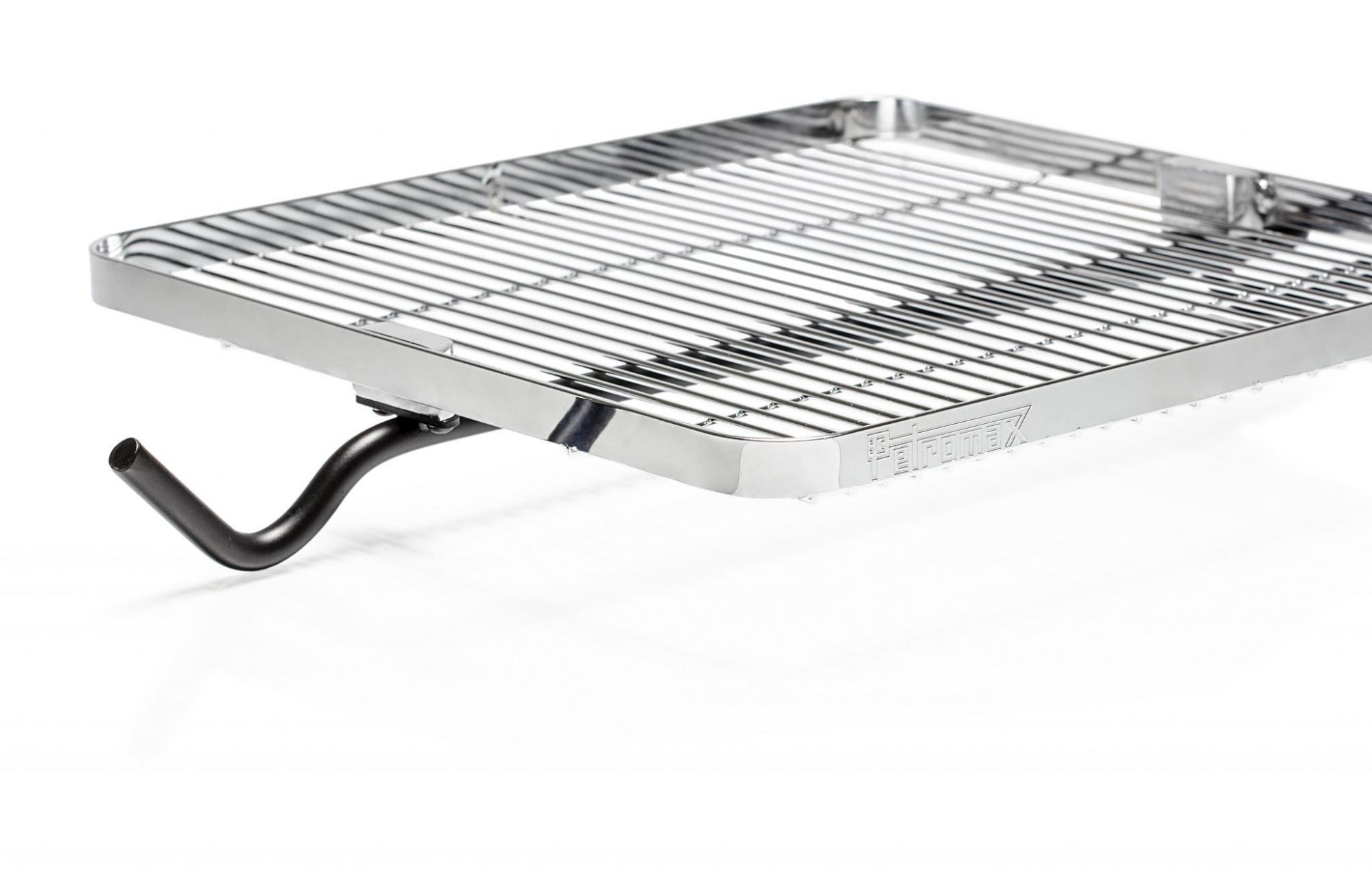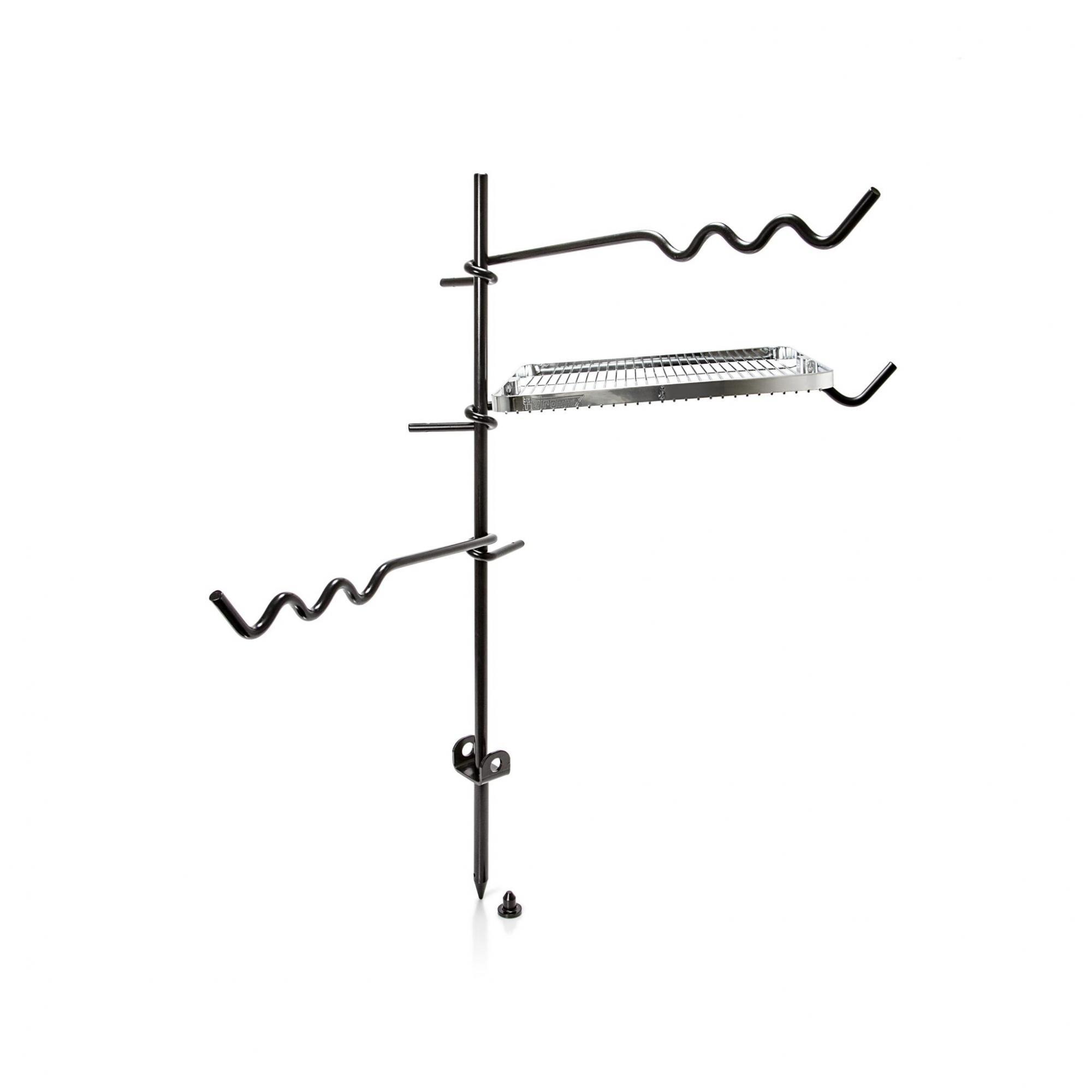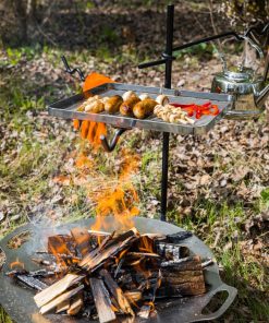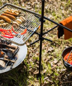 Dein Feueranker verfügt über eine Hauptstange, die im Boden fixiert wird, und drei Arme, die du individuell auf den Feueranker aufstecken und in Höhe sowie Ausrichtung variieren kannst. Zwei der Arme haben Einkerbungen an den Enden, an denen du deine Kochutensilien anhängen kannst. Der dritte Arm verfügt über einen Grillrost sowie eine zusätzliche Einkerbung für deine Grillhandschuhe oder die Grill- und Kohlenzange. Auf dem großzügigen Grillrost mit erhöhten Rand finden Würstchen, Gemüsespieße und Co. sicher Platz.