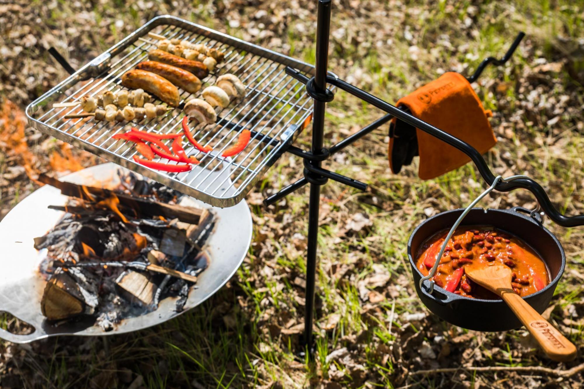 Vor der Verwendung des Feuerankers musst du allerdings auf die jeweilige Bodenbeschaffenheit an der Feuerstelle achten. Sandiger Boden eignet sich zum Beispiel weniger gut, da hier der Feueranker wenig Halt finden wird. Achte beim Kochen mit schweren Feuertöpfen auf einen angemessenen Gewichtsausgleich, um so einen sicheren Stand deines Feuerankers zu gewährleisten.