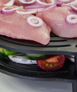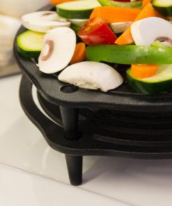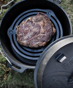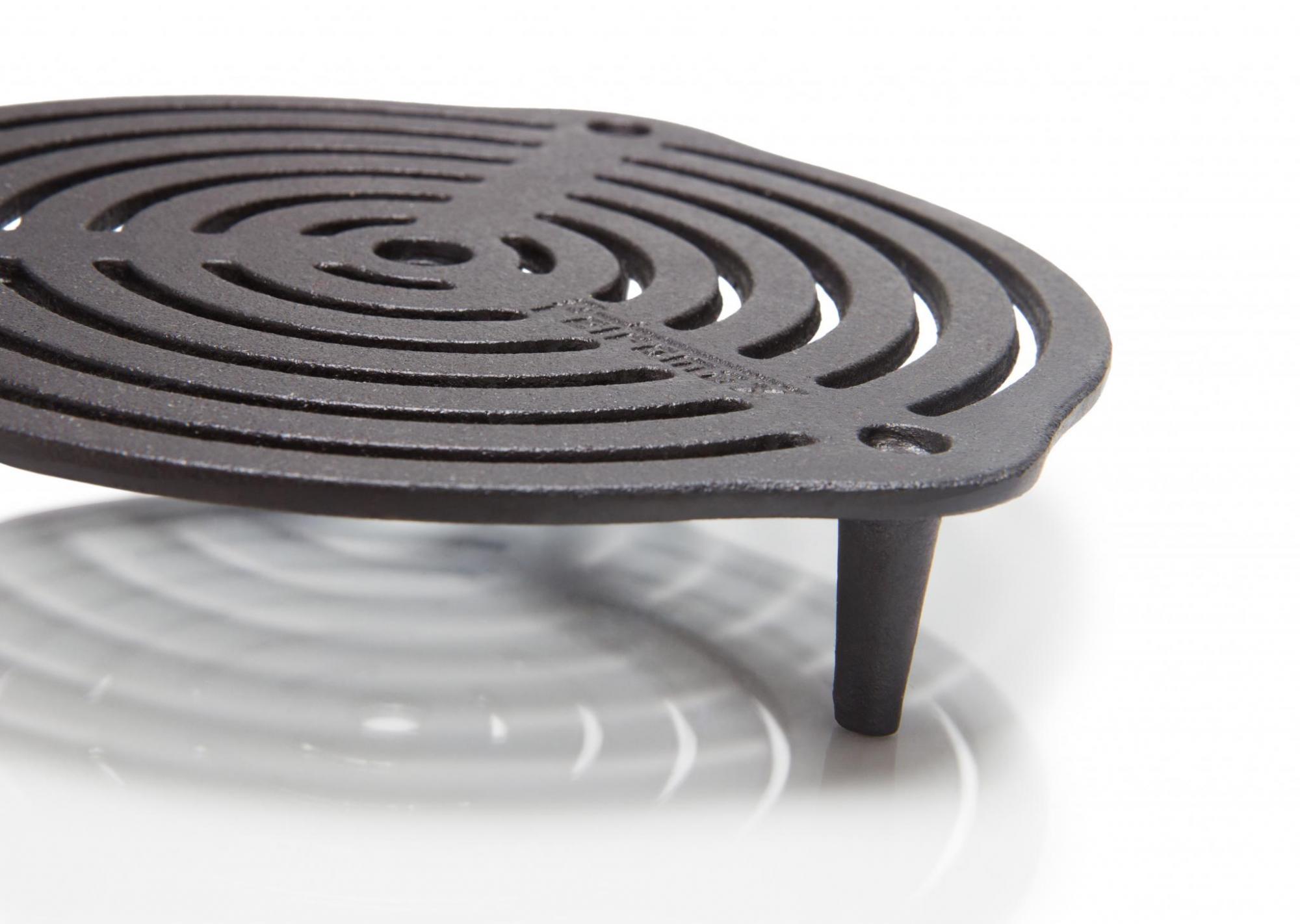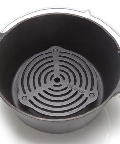Der Stapelrost aus massivem Gusseisen schafft eine erstklassige Hitzeverteilung – genau das Richtige zum Backen, Dünsten und Dampfgaren auf mehreren Ebenen im Feuertopf. Weil der Einsatz auf drei Füßen steht, die mit einer Länge von 4,3 cm den idealen Abstand zum Topfboden schaffen, gelingen dir Fleisch, Gemüse und Kuchen ohne Anbrennen. Der Stapelrost passt übrigens besonders gut in den Feuertopf ft6 und in alle größeren Töpfe. Du kannst diesen Rost dank seines seasoned finish sofort verwenden und musst ihn nicht einbrennen.