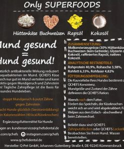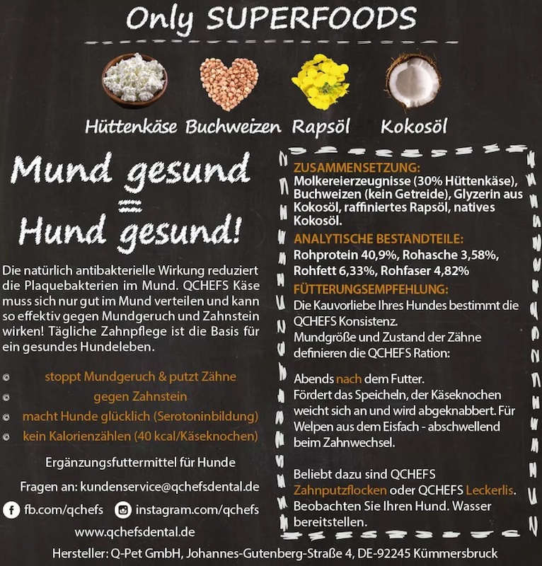 🦷 Mund gesund = Hund gesund! Die natürlich antibakterielle Wirkung reduziert die Plaquebakterien im Maul. QCHEFS Käse muss sich nur gut im Maul verteilen und kann so effektiv gegen Mundgeruch und Zahnstein wirken! Tägliche Zahnpflege ist die Basis für ein gesundes Hundeleben.