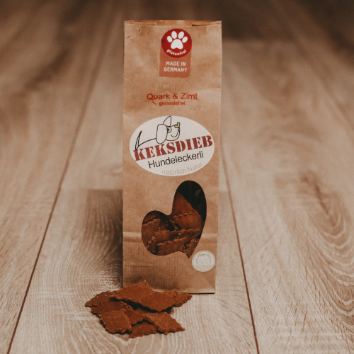 Durch das schonende Produktionsverfahren (von Hand) und dem Backprozess bei niedrigen Temperaturen, werden feste Zellstoffe aufgebrochen und damit für den Hundemagen verwertbar – ohne dass dabei alle Vitamine & Spurenelemente verloren gehen. Damit sind Keksdieb-Produkte sehr gut geeignet, den Hund mit zusätzlichen Nährstoffen zu versorgen.