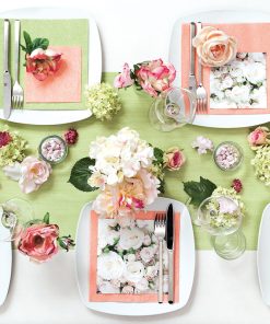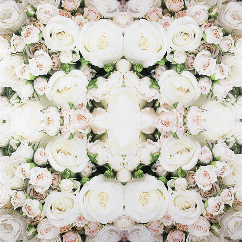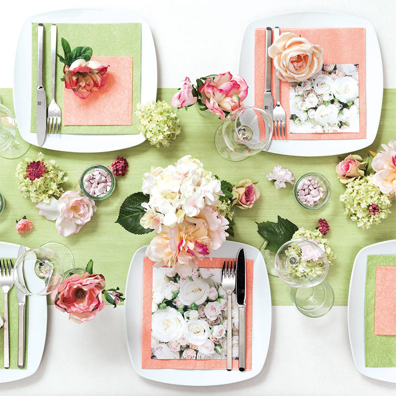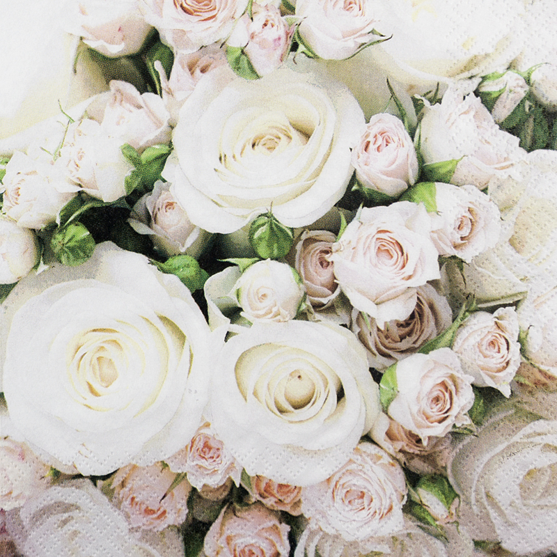 Die Romantic Roses Servietten verzaubern mit ihrem exquisiten Bouquet aus cremefarbenen, rosa und weißen Rosen und bieten stilvolle Anmutung für jeden Anlass.