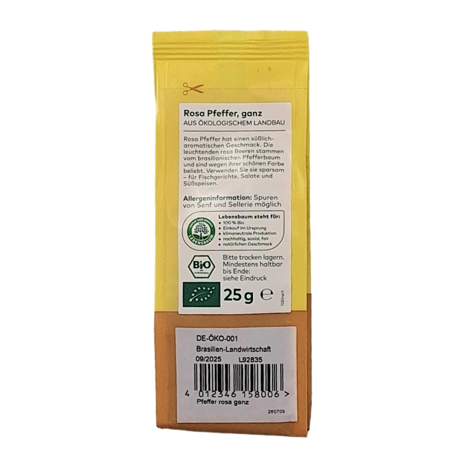 Rosa Pfeffer hat einen süßlich-aromatischen Geschmack. Die leuchtenden rosa Beeren stammen vom brasilianischen Pfefferbaum und sind wegen ihrer schönen Farbe beliebt. Verwenden Sie sie sparsam – für Fischgerichte, Salate und Süßspeisen.