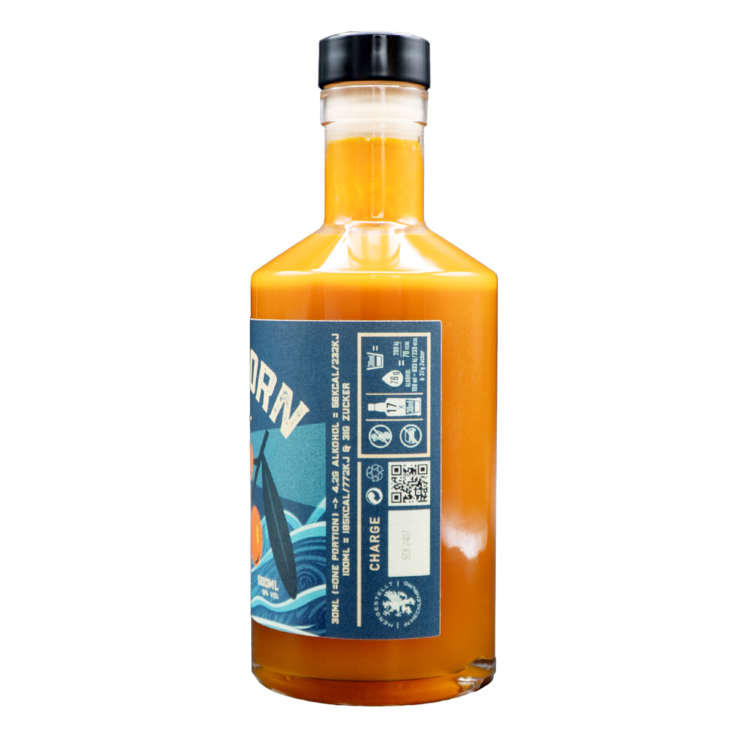 Blöd beim Sanddorn: Wenn er erhitzt wird, entsteht dieser für ihn typische muffige Geschmack. Deshalb entsaften wir die Sanddornbeeren kalt. Auch der Auszug ist kalt. Macht ordentlich Arbeit. In der Naturvariante haben wir das Fruchtfleisch im Likör gelassen. Sieht zwar manchmal sch**sse aus, schmeckt aber wirklich gut! So richtig spritzig, fruchtig und voll mit Frucht!