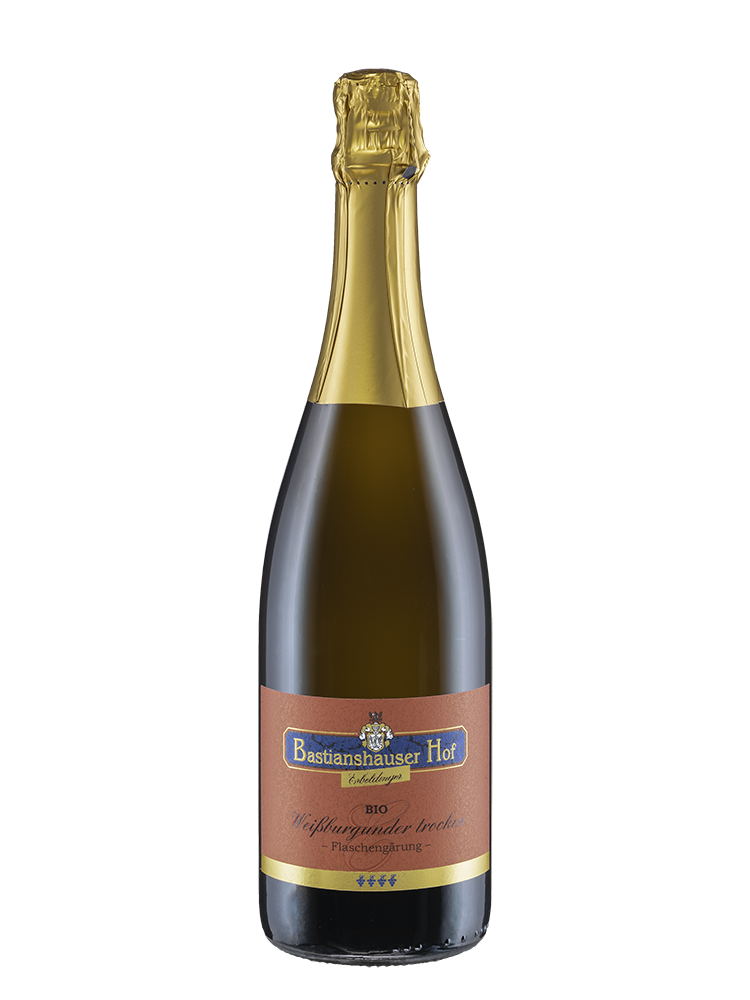 Sekt Weissburgunder trocken vom Weingut Bastianshauser Hof der Familie Erbeldinger aus Bechtheim in Rheinhessen.