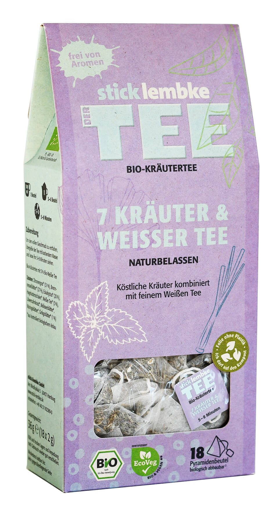 stick & lembke Bio 7 Kräuter & Weisser Tee Pyramidenbeutel 10x2g