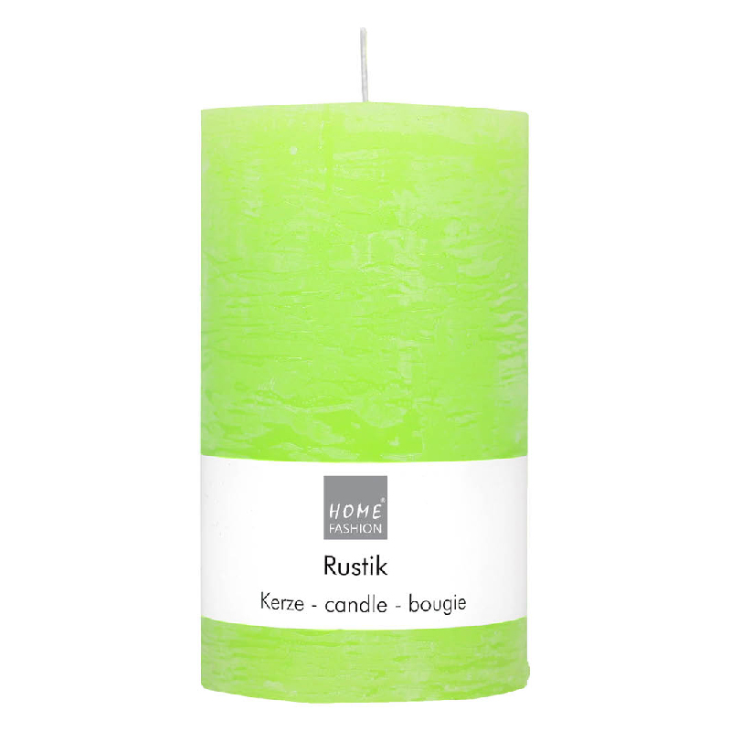 Die Stumpenkerze Rustik lime Ø 7 cm besticht durch ihre frische Farbe und rustikale Eleganz, ideal für ganzjährige Dekorationen.