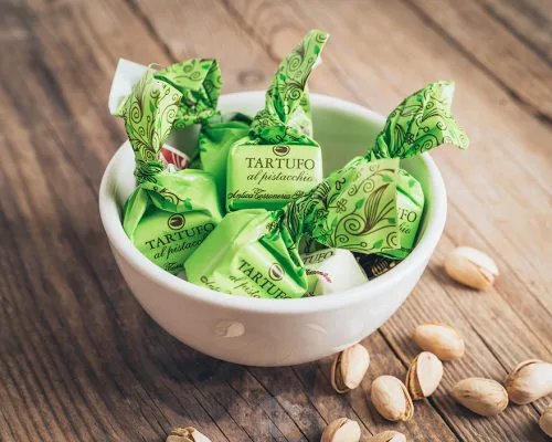 Die Trüffelpraline aus weißer Schokolade besticht durch ihr intensives Pistazienaroma und einen Hauch natürlicher Vanille. Der Pistazienanteil beträgt 32 %. Diese Pralinen zergehen auf der Zunge wie Pistazieneis…unfassbar lecker und zartschmelzend.