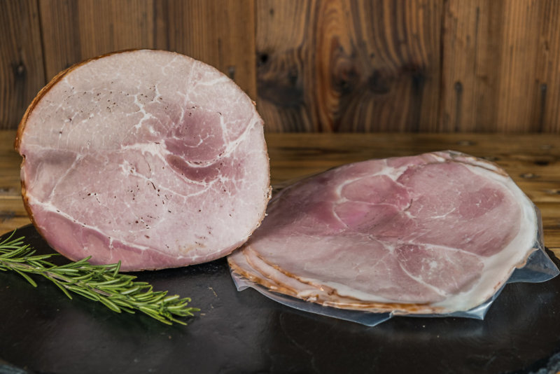Feinste Kochpöckelware aus der ganzen Schweinekeule in schonender Garmethode zubereitet..