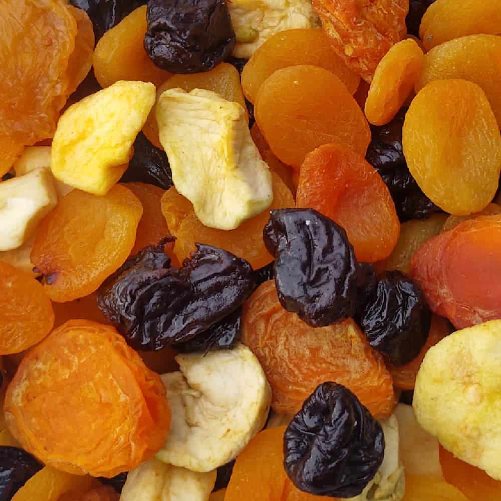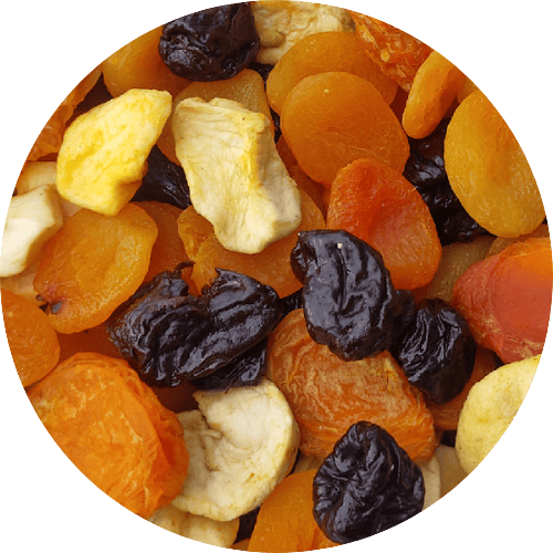 Pflaumen, Aprikosen, Pfirsiche, Apfel, Konservierungsmittel: E220 (SULFIT), E202, E223 (SULFIT)