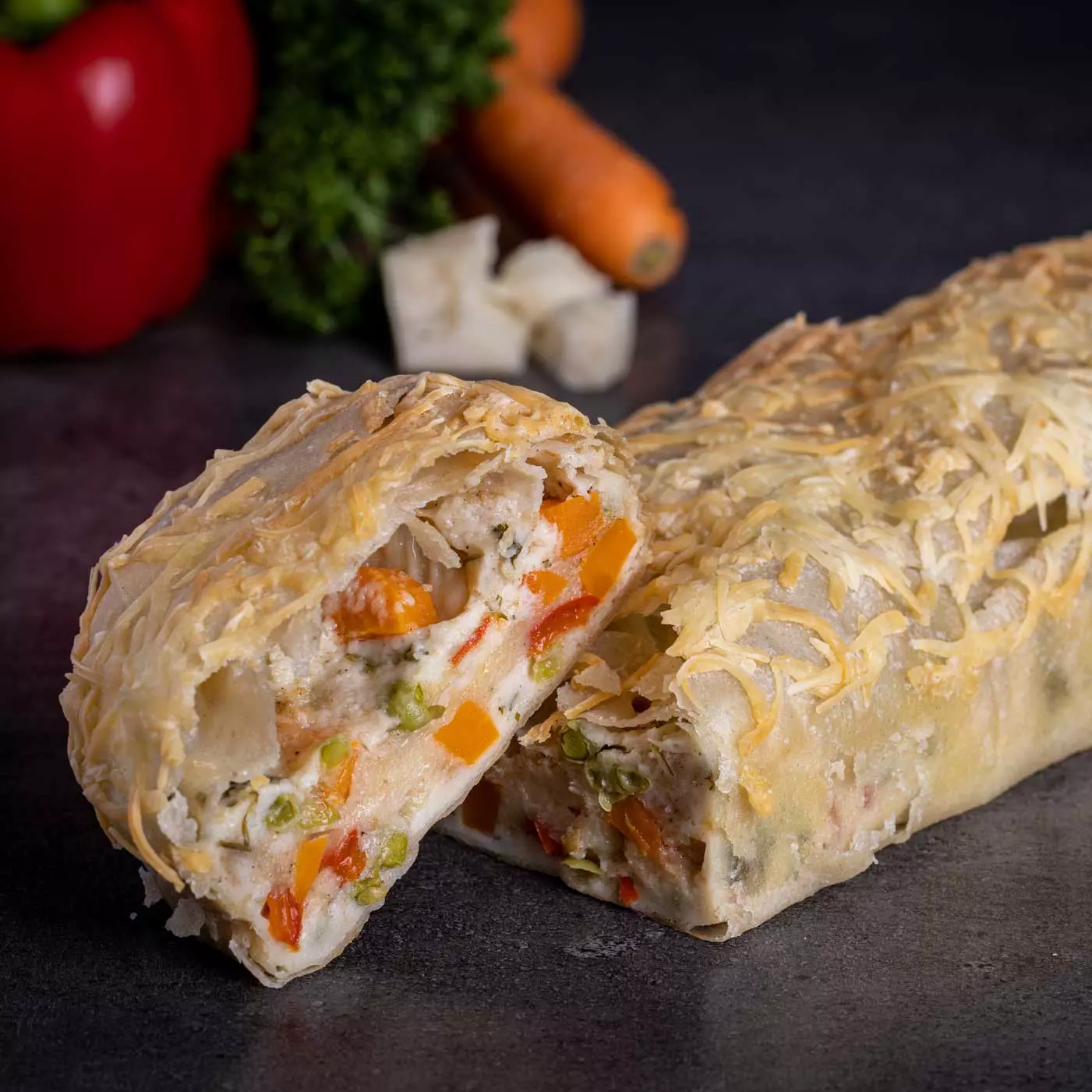 Beim Veggie Mozzarella wird regionales und saisonales Gemüse im „Tuttifrutti Mix“ mit fein geriebenem Mozzarella von Hand aufgerollt.