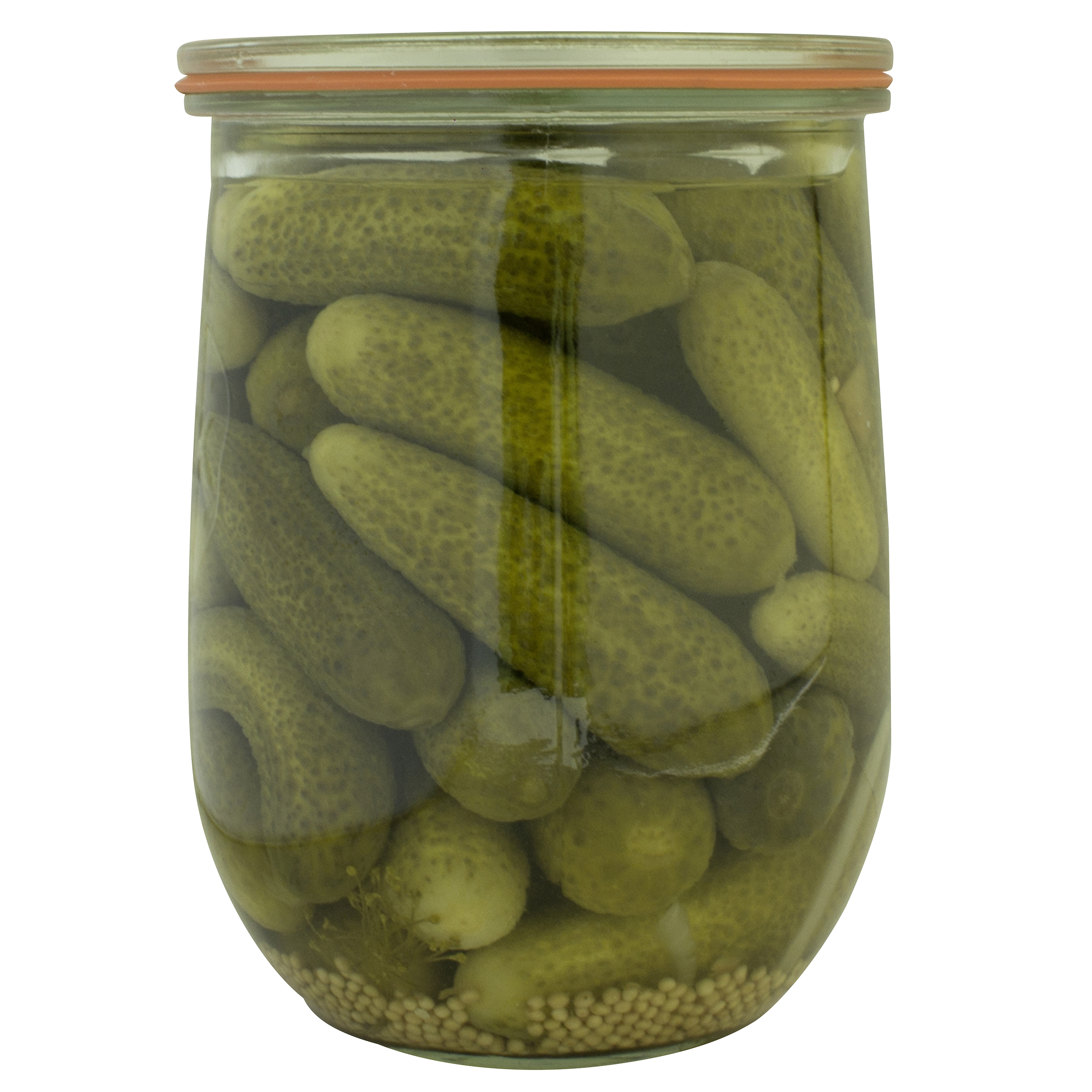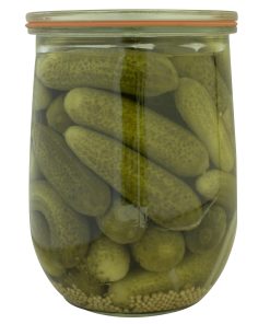 Lecker eingelegte Gewürzgurken. Etwas würziger als unser feiner Gurkentopf, aber nicht so scharf wie die scharfen Früchtchen.